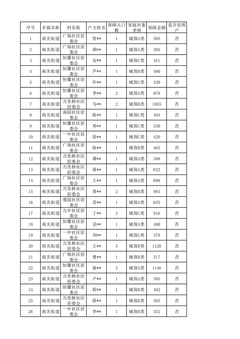 南关街道2025年5月低保资金花名册