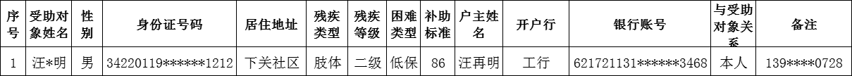 西关街道2024年7月新增困难残疾人生活补贴审核汇总表