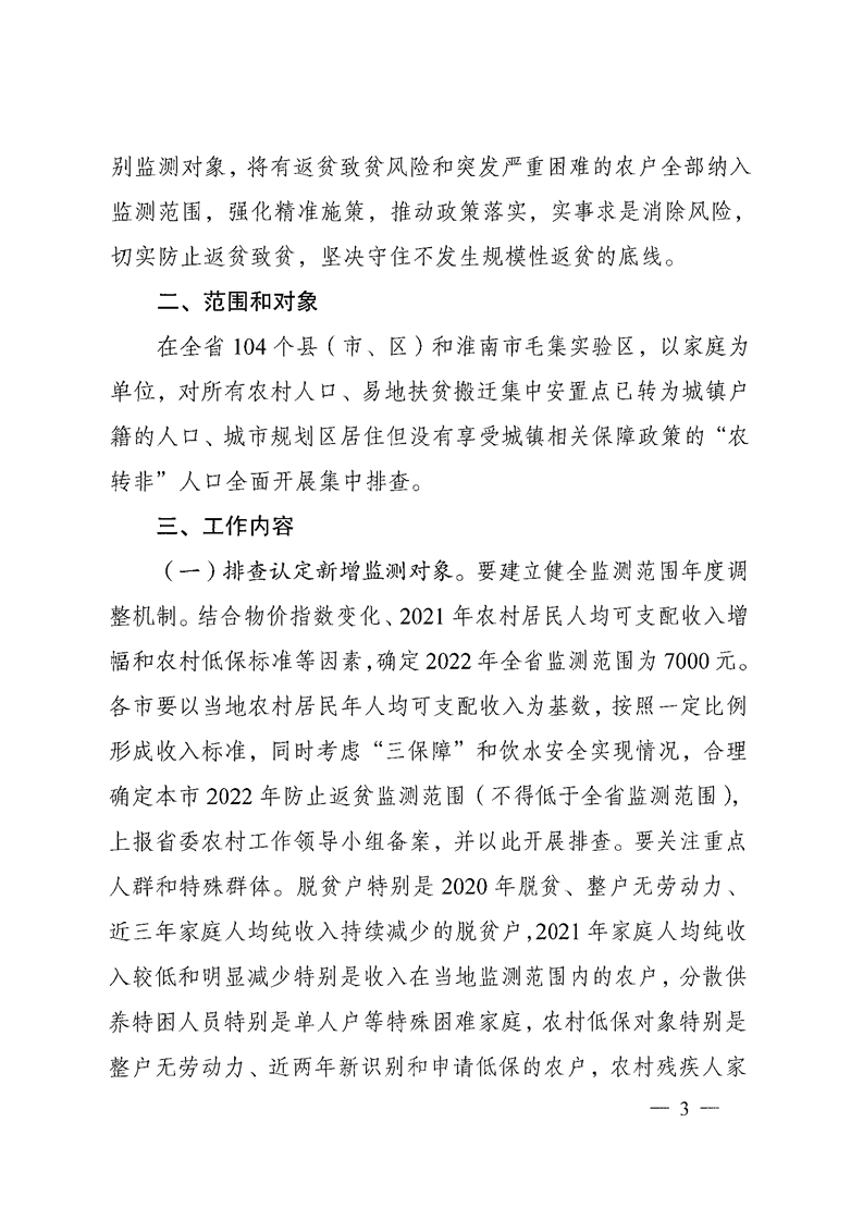 省级文件】安徽省乡村振兴局关于印发《2022年防止返贫监测帮扶集中排查工作方案》的通知
