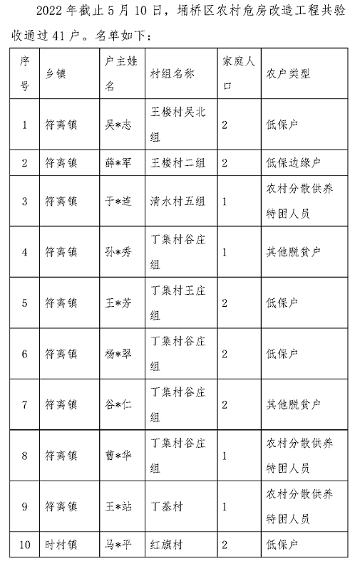 【认定公示】2022年度埇桥区农村危房改造验收名单公示