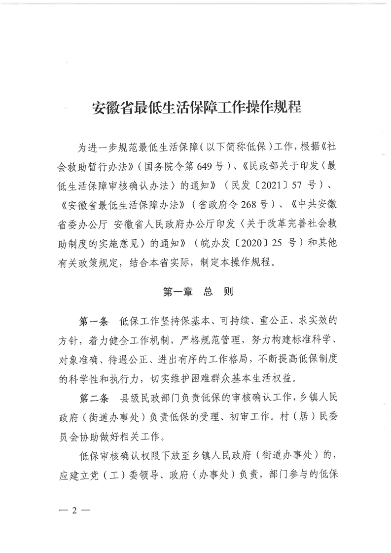 【政策文件】《安徽省最低生活保障工作操作规程》(皖民社救字〔2021〕76号)
