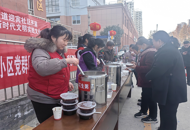 寒冬生暖意,志愿抚人心。活动现场,社区党员志愿者向前来参加活动的人们介绍了腊八节的由来和习俗,引导大家弘扬中华优秀传统文化,过好中国节日,坚定文化自信。党员志愿者把早早熬制好的腊八粥端给了每一位参与者,一碗碗热气腾腾、情意浓浓的腊八粥,在充满年味的同时,也让大家在严寒的冬季感受到春天般的温暖。