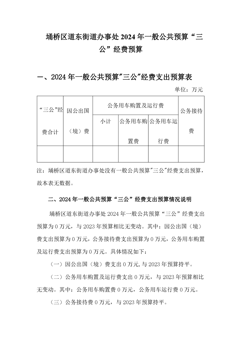 埇桥区道东街道办事处2024年一般公共预算“三公”经费预算