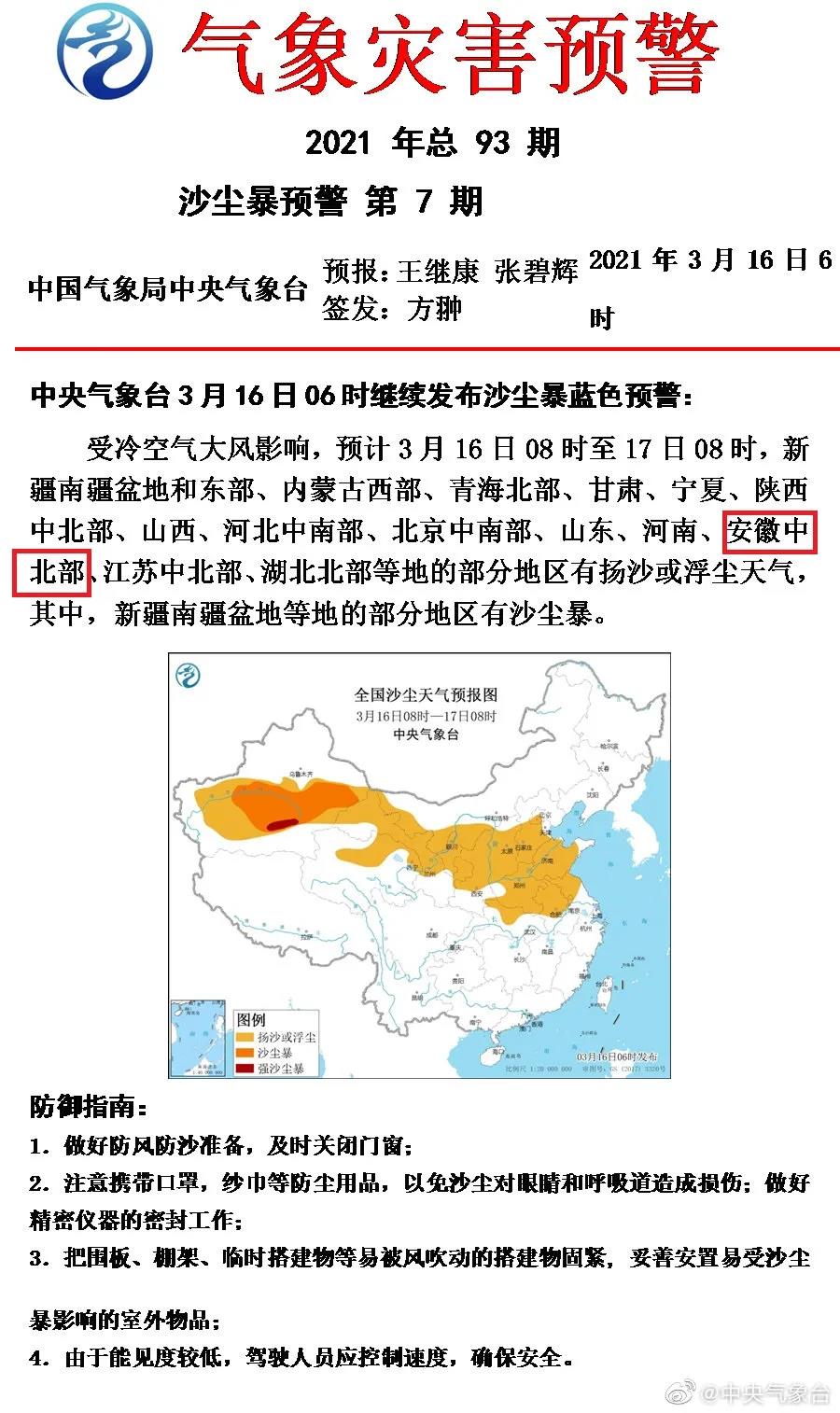 【自然灾害类预警信息】沙尘暴