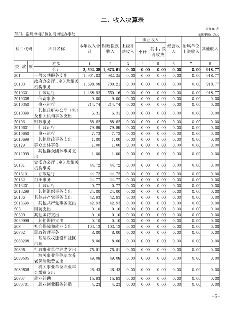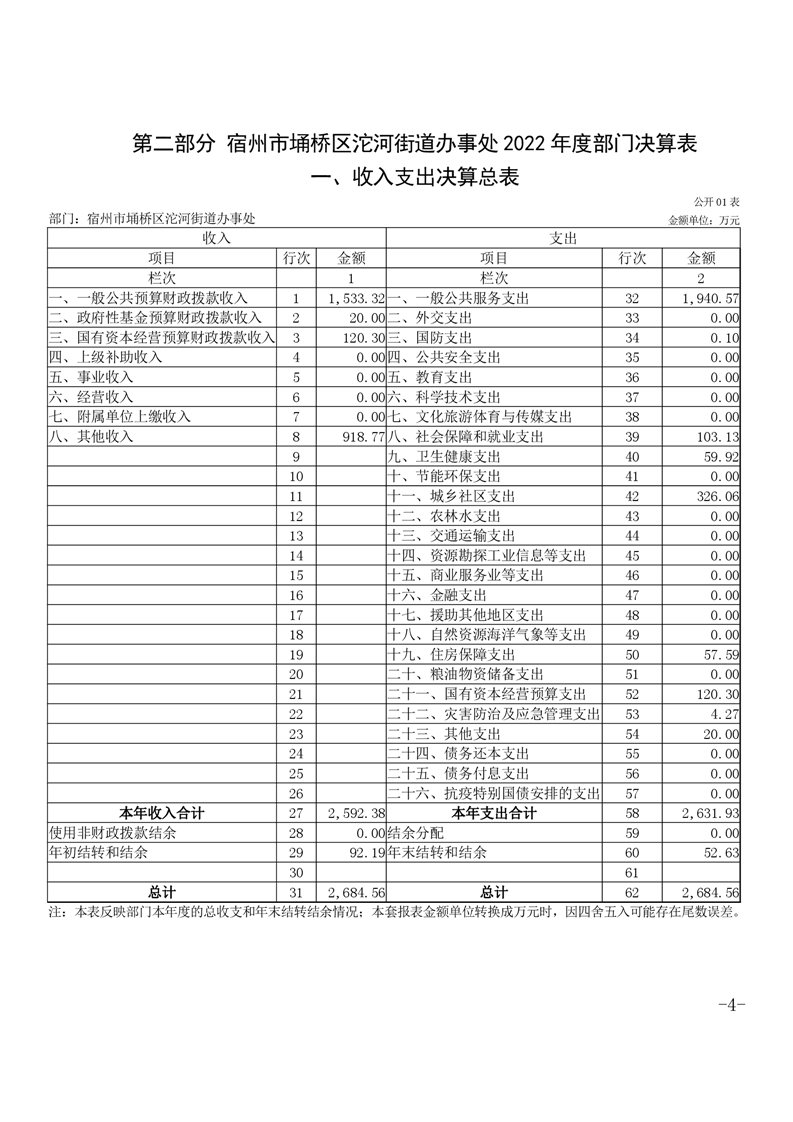 宿州市埇桥区沱河街道办事处2022年度部门决算