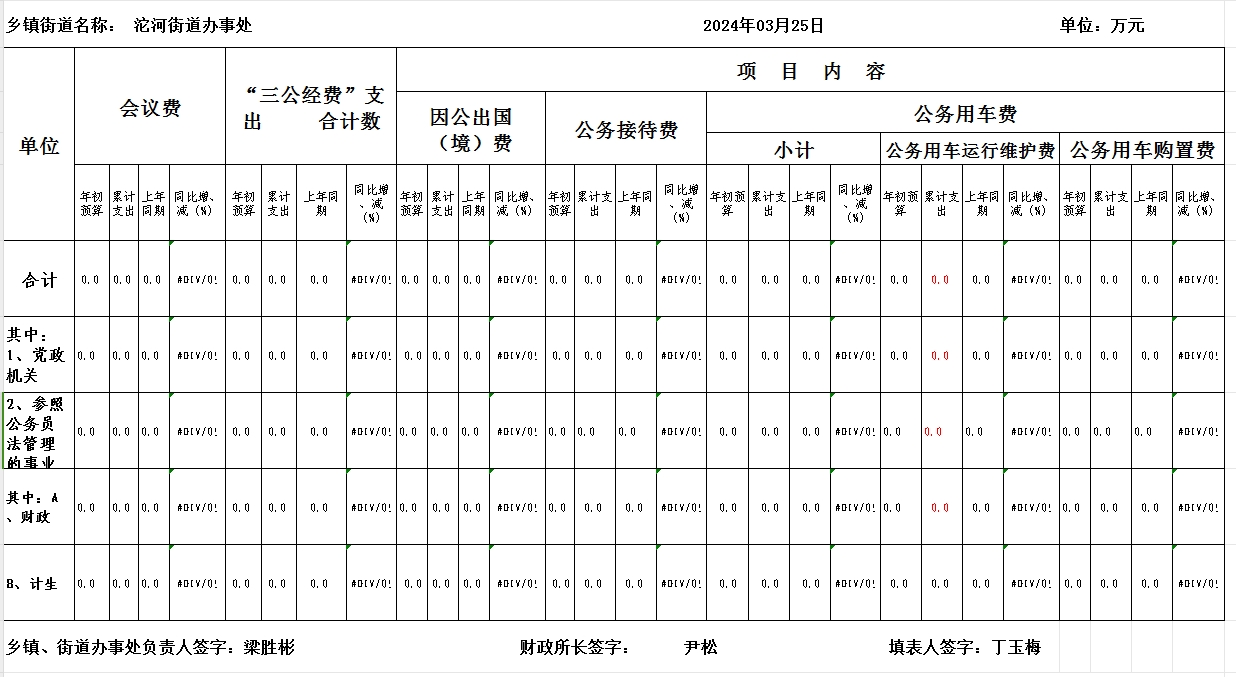沱河街道办事处2024年3月三公经费统计表