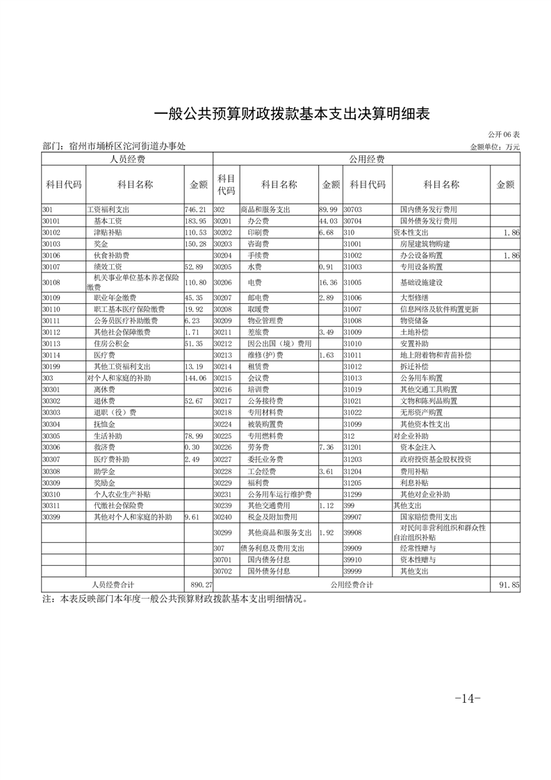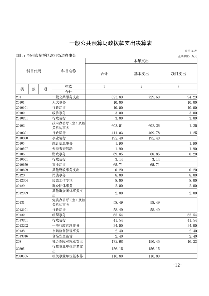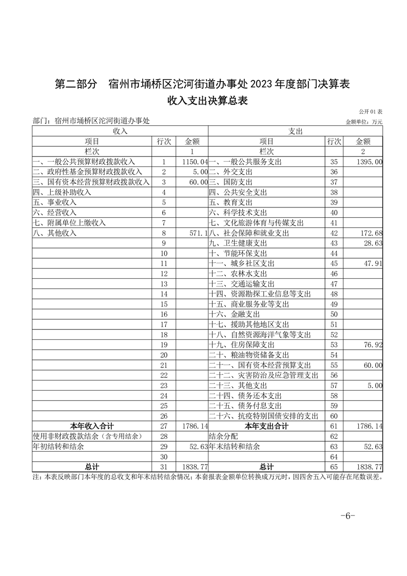 宿州市埇桥区沱河街道办事处2023年度部门决算