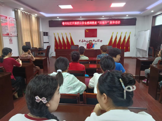 为提高辖区居民对群众安全感满意度,营造稳定和谐的良好氛围,7月14日上午,春光社区开展公众安全感满意度“双提升”宣传活动。