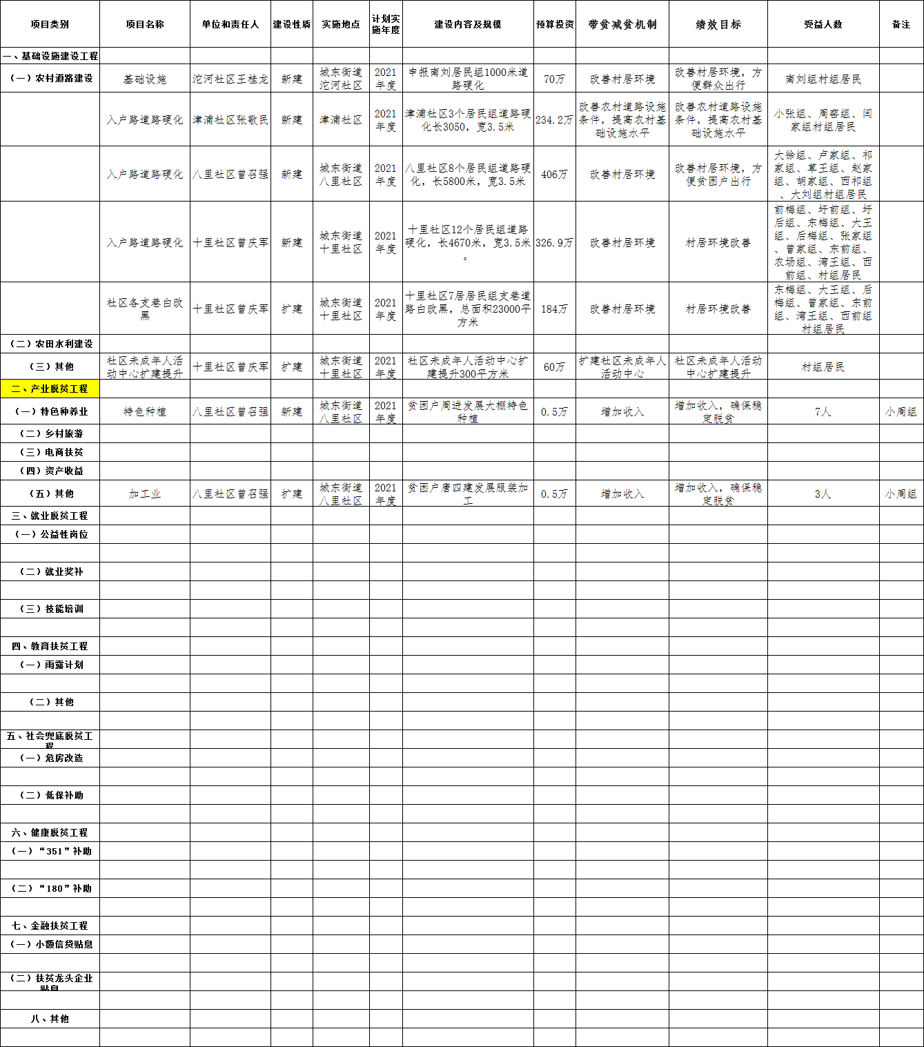 埇桥区2021年城东街道扶贫项目库申报明细表