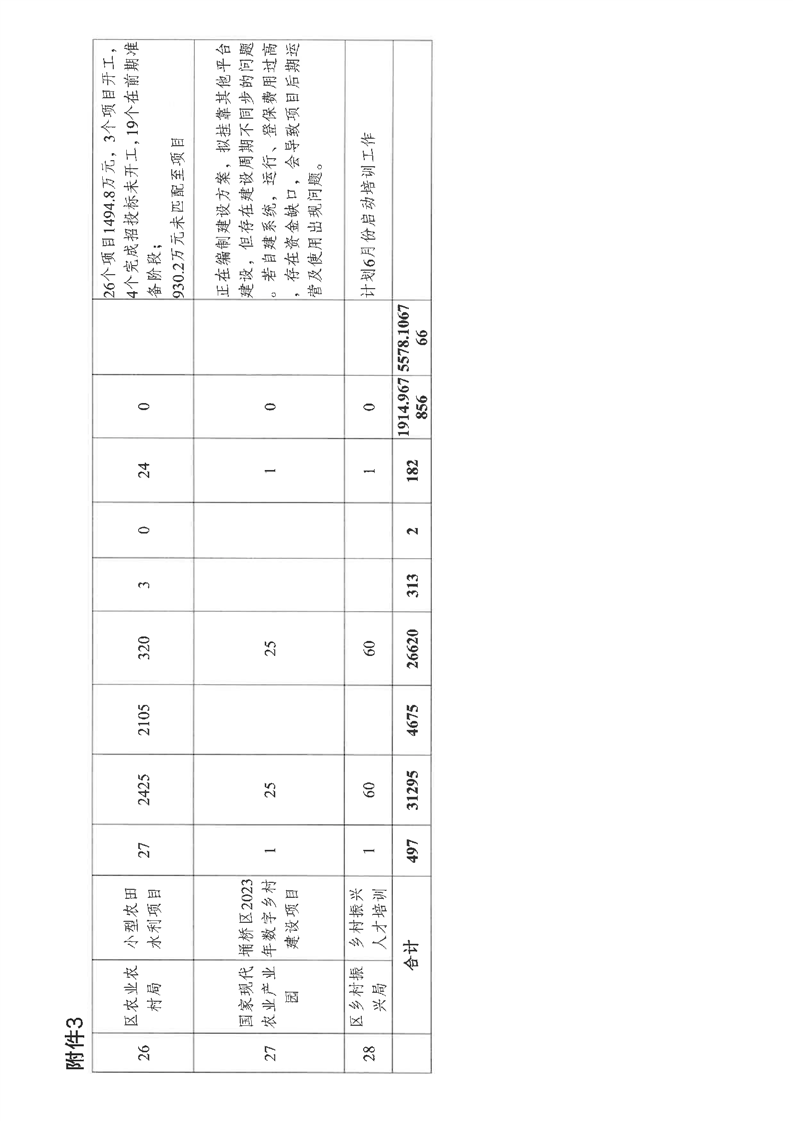 【项目计划完成情况】区巩固拓展脱贫攻坚成果专项小组办公室关于2023年财政衔接推进乡村振兴补助资金项目实施情况的通报