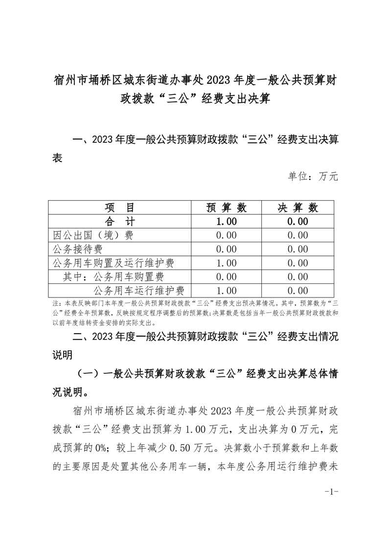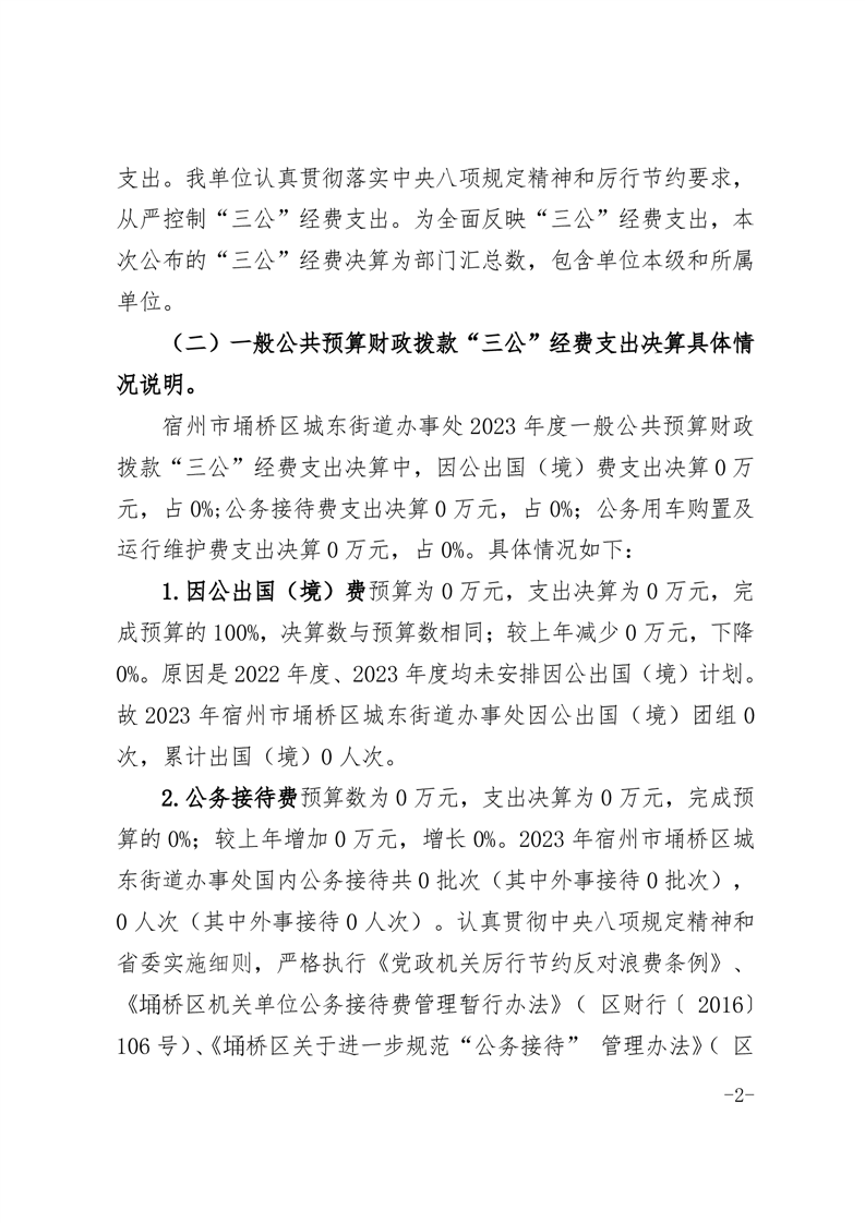 宿州市埇桥区城东街道办事处2023年度一般公共预算财政拨款“三公”经费支出决算