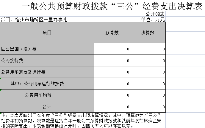 三里湾街道2019年一般公共预算财政拨款“三公”经费支出决算表
