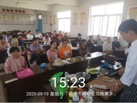 北杨寨行管区社保所举办厨师技能培训班,9月,三官村数十位村民在村委会接受了来自专业老师的培训教学,主要有家政服务、面点制作、炒菜烧菜、健康护理等,据悉该培训班陆续在各村开展相关技能培训工作,给群众教授更多技能,丰富生活就业能力。