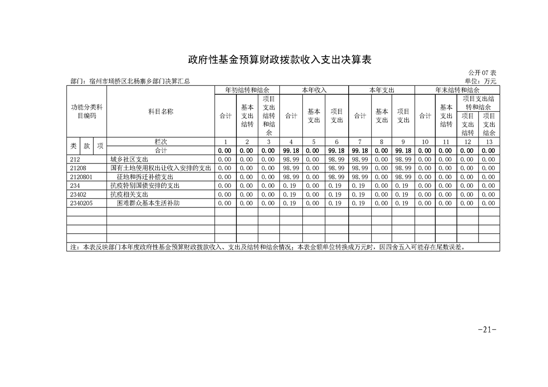 宿州市埇桥区北杨寨行管区2020年度部门决算