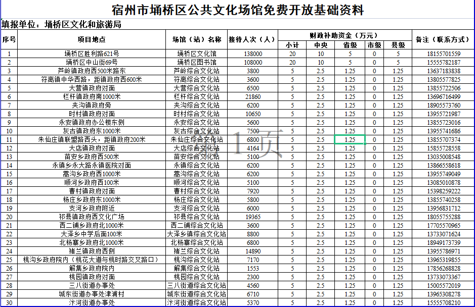宿州市埇桥区公共文化场馆地址信息、联系方式汇总表