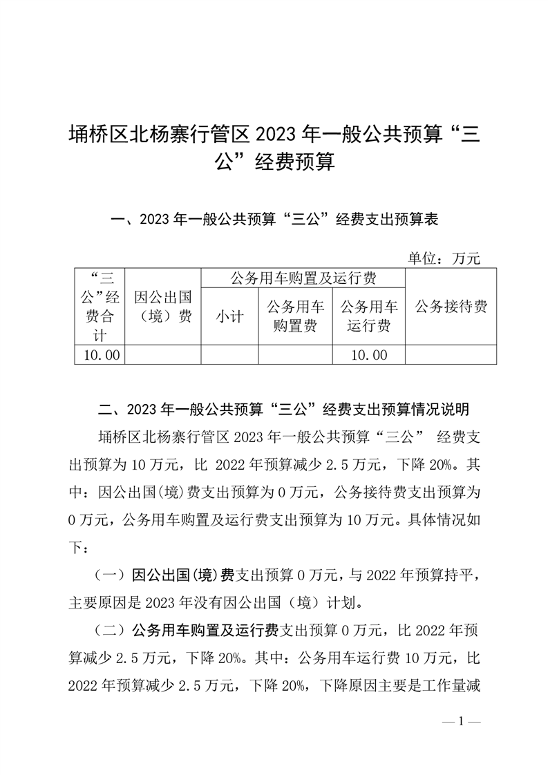 埇桥区北杨寨行管区2023年一般公共预算“三公”经费预算
