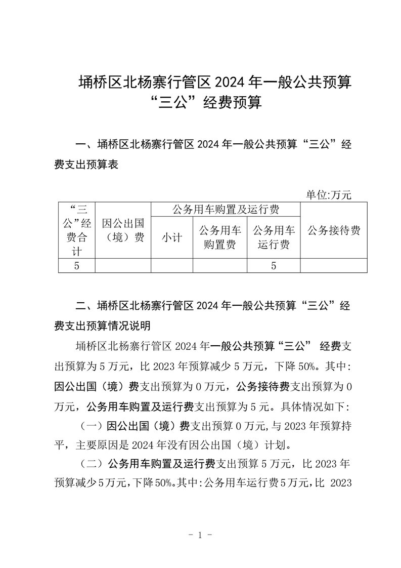 埇桥区北杨寨行管区2024年一般公共预算“三公”经费预算
