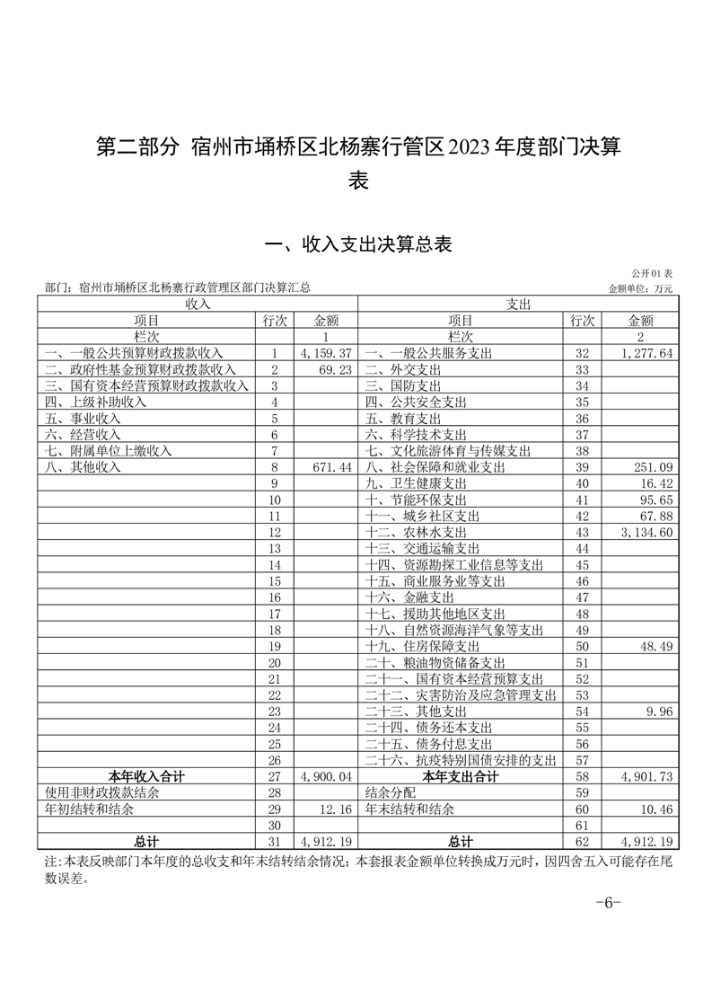 宿州市埇桥区北杨寨行管区2023年度部门决算