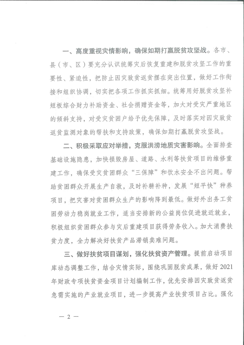 国扶办、财政部关于用好财政扶贫资金项目支持克服洪涝地质灾害影响的通知