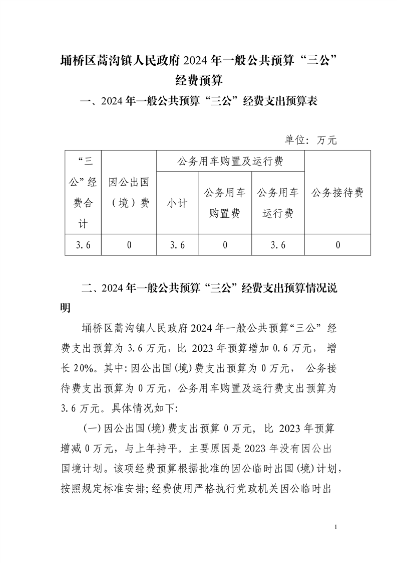 埇桥区蒿沟镇人民政府2024年一般公共预算“三公”经费预算