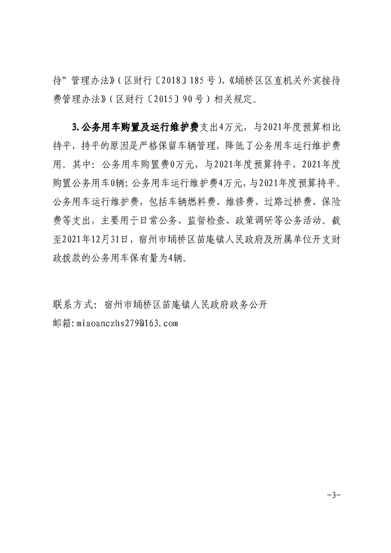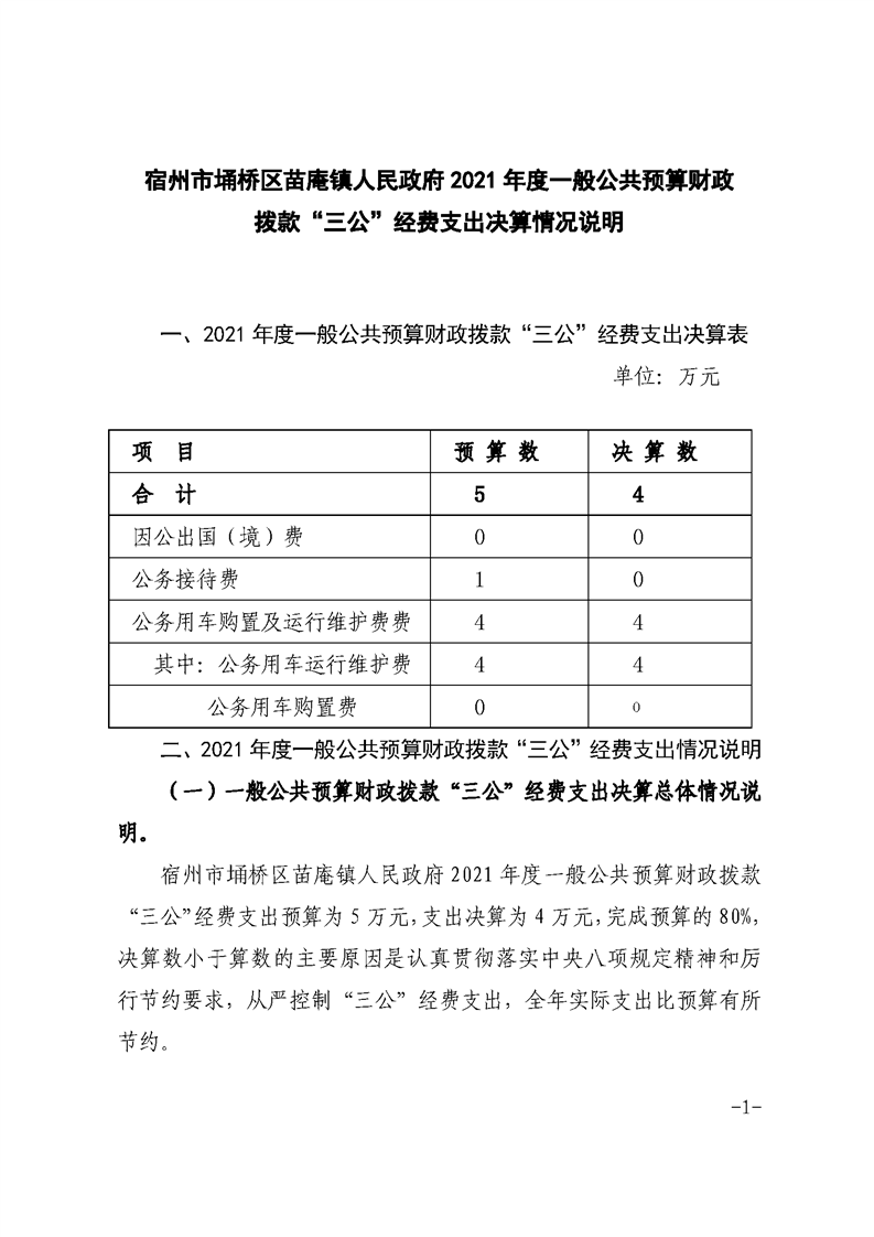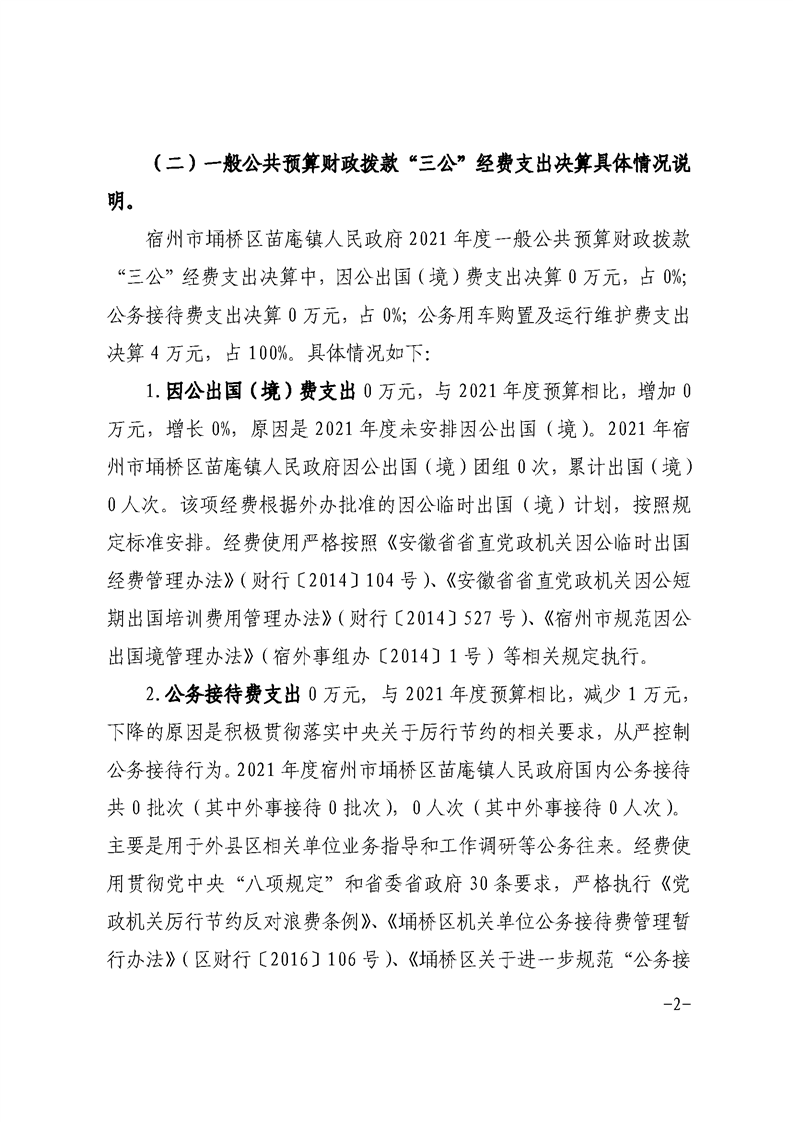 宿州市埇桥区苗庵镇人民政府2021年度一般公共预算财政拨款“三公”经费支出决算情况说明
