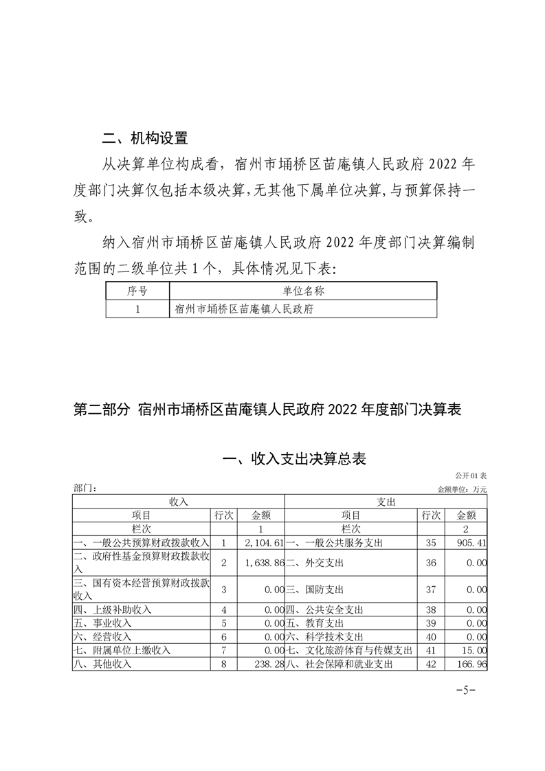 宿州市埇桥区苗庵镇人民政府2022年度部门决算