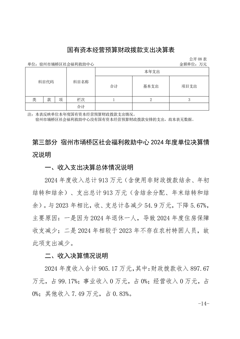 | 名称: | 宿州市埇桥区社会福利救助中心2024年度单位决算 | ||