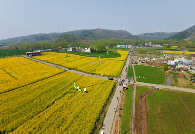 这里是皖北最大的花海,微风拂过,花浪翻涌,与青山绿水、和美乡村、美丽的符离大道、山间小路交相辉映,游客在花海里穿梭打卡留念、孩子们在花海里追逐梦想,勾勒出一幅生机盎然的春日田园风光和乡村振兴、农民致富幸福图。